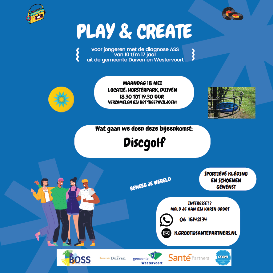 Play & Create is een initiatief van jongerencoaching, het Beweegteam en de jeugdcultuurcoach van 1Stroom Westervoort/Duiven.